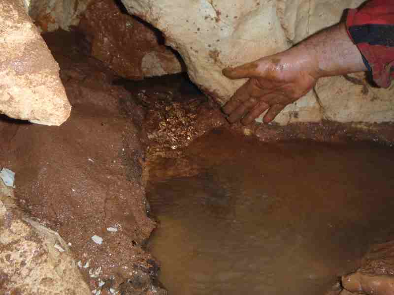Chegados ao fundo do poço, de imediato se ouviu o curso de água, idêntico ao registado em 2006. Desta vez, através da desobstrução realizada que deu acesso à "sala do ano e meio", foi possível, pela primeira vez, constatar a origem e destino da água.
